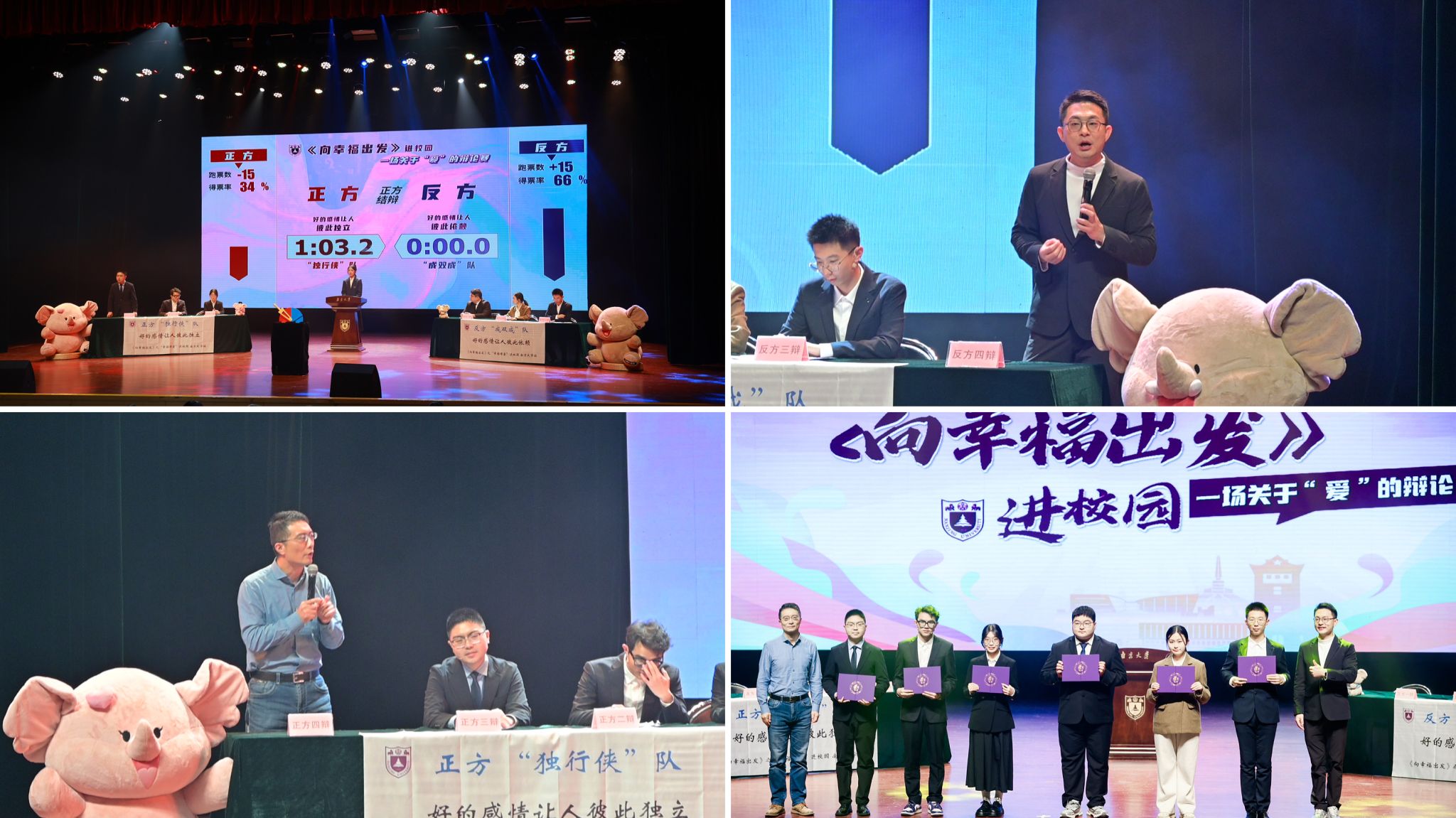 好的情感让人彼此独立还是彼此依赖?《向幸福出发》栏目来到凯发k8官网,带来一场关于“爱”的辩论赛,CMG观察的吉祥物小象“采采”“鼓鼓”为选手们在线“加油”。凯发k8官网学生辩论协会的6位辩手分别组成正方“独行侠”队与反方“成双成”队。凯发k8官网心理健康教育与研究中心主任陈昌凯和“微反应研究在心理健康监测和干预领域的应用”项目负责人、《向幸福出发》栏目嘉宾姜振宇分别担任正反双方的四辩。双方围绕辩题展开激烈角逐。经过现场一百名观众投票,反方“成双成”队以领先优势胜出。正方二辩孟政屹和反方二辩方菁童获得“幸福MVP”辩手称号。