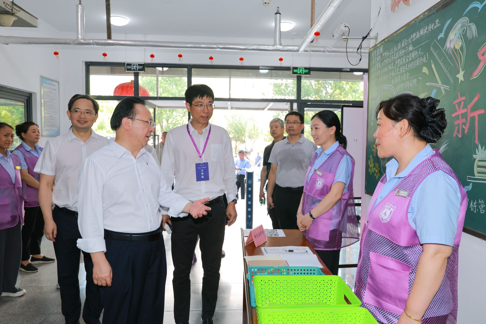 来到12栋宿舍、17栋宿舍,谭铁牛实地考察了门窗家具、洗衣房、开水间等情况,询问了新生和家长对宿舍的评价,并提出了进一步优化整改的具体意见。他向宿管人员致以问候和感谢,希望他们爱校如家、爱生如子,对学生给予更多关心,帮助他们顺利适应新环境、新生活。