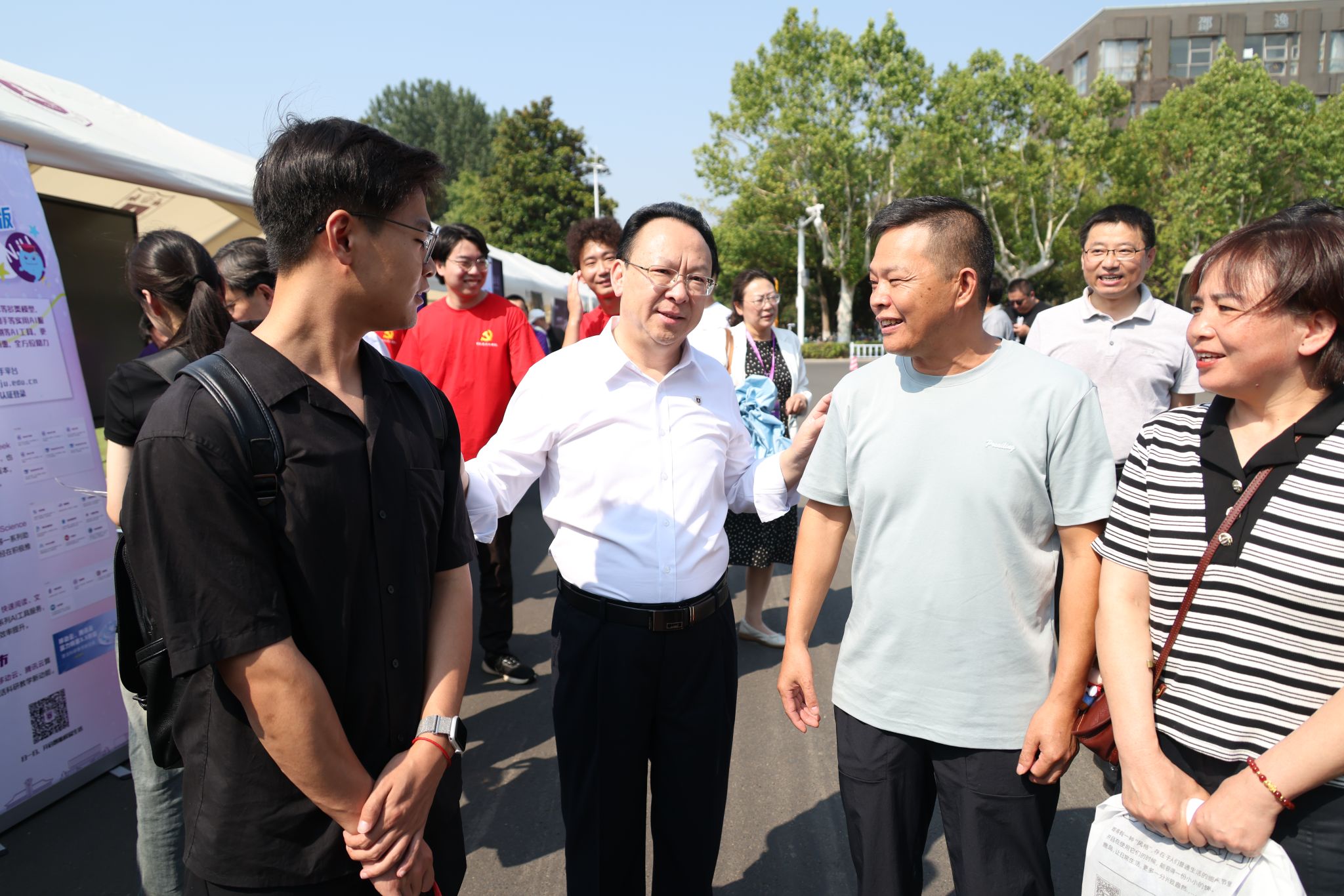 校党委书记、中国科学院院士谭铁牛走访仙林校区迎新接待站、学院报到处、学生宿舍等地,看望新生和送学家长,现场考察迎新工作。