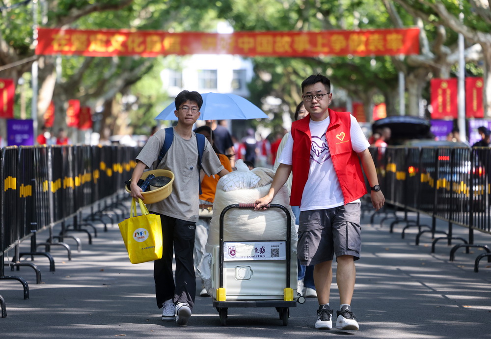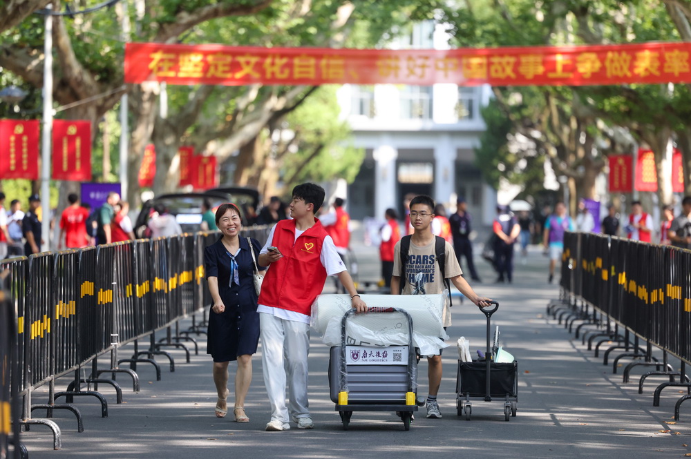 8月30日,凯发k8官网4113名本科新生踏入校门,背上梦想的行囊,在鼓楼校区开启大学生活。据介绍,为保障新生顺利报到,凯发k8官网开放校园,让送学家长车辆有序进入校园,高年级大学生们披上红马甲,志愿协助新生们搬运行李。